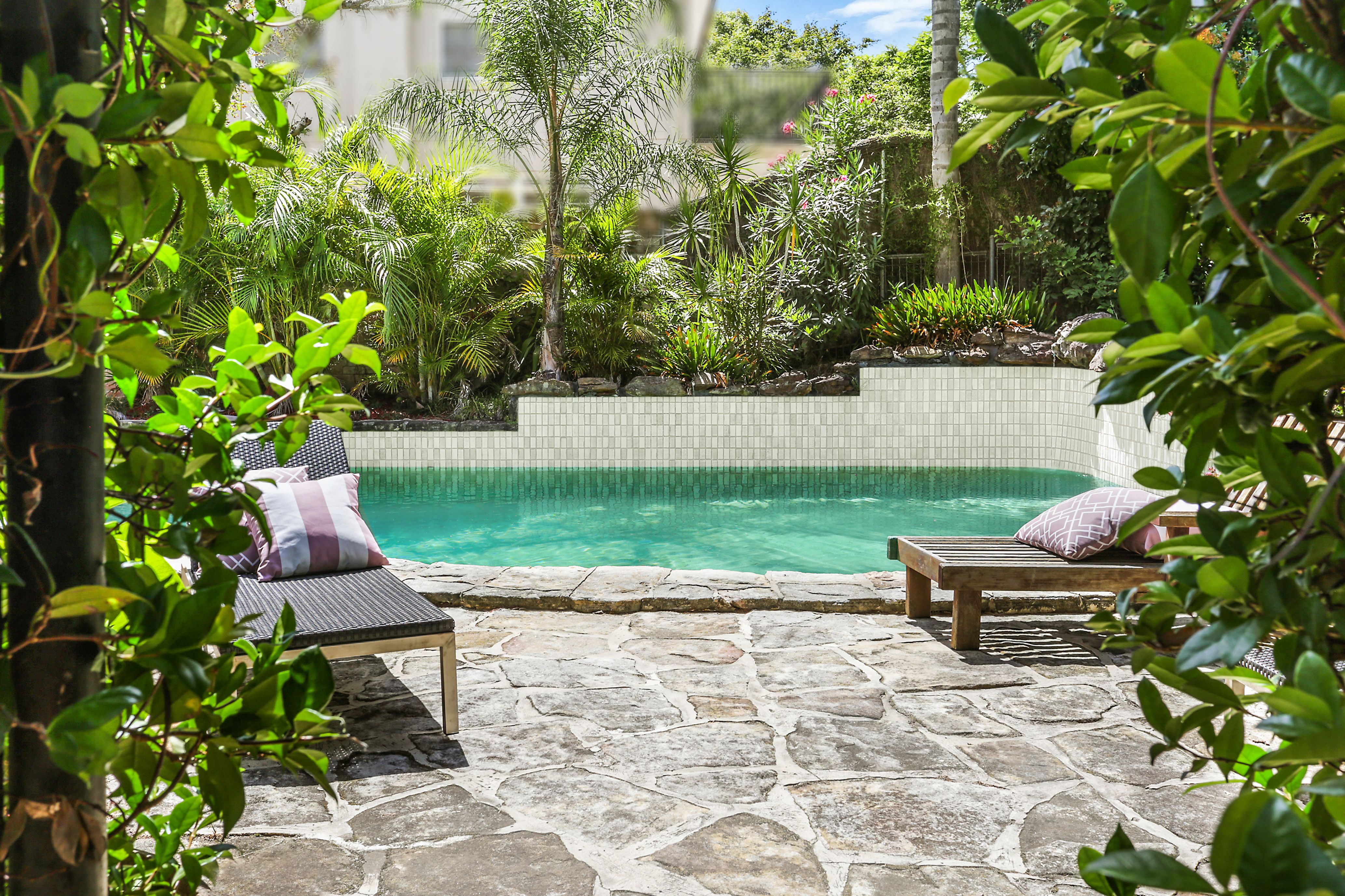 * Landscaped backyard featuring alfresco entertaining terrace, built-in barbecue, pool