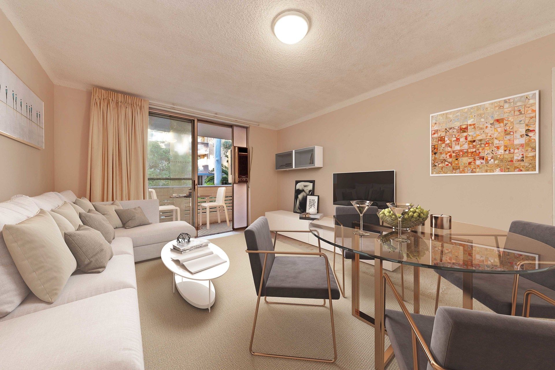 - Large combined living/dining room flowing out onto the balcony