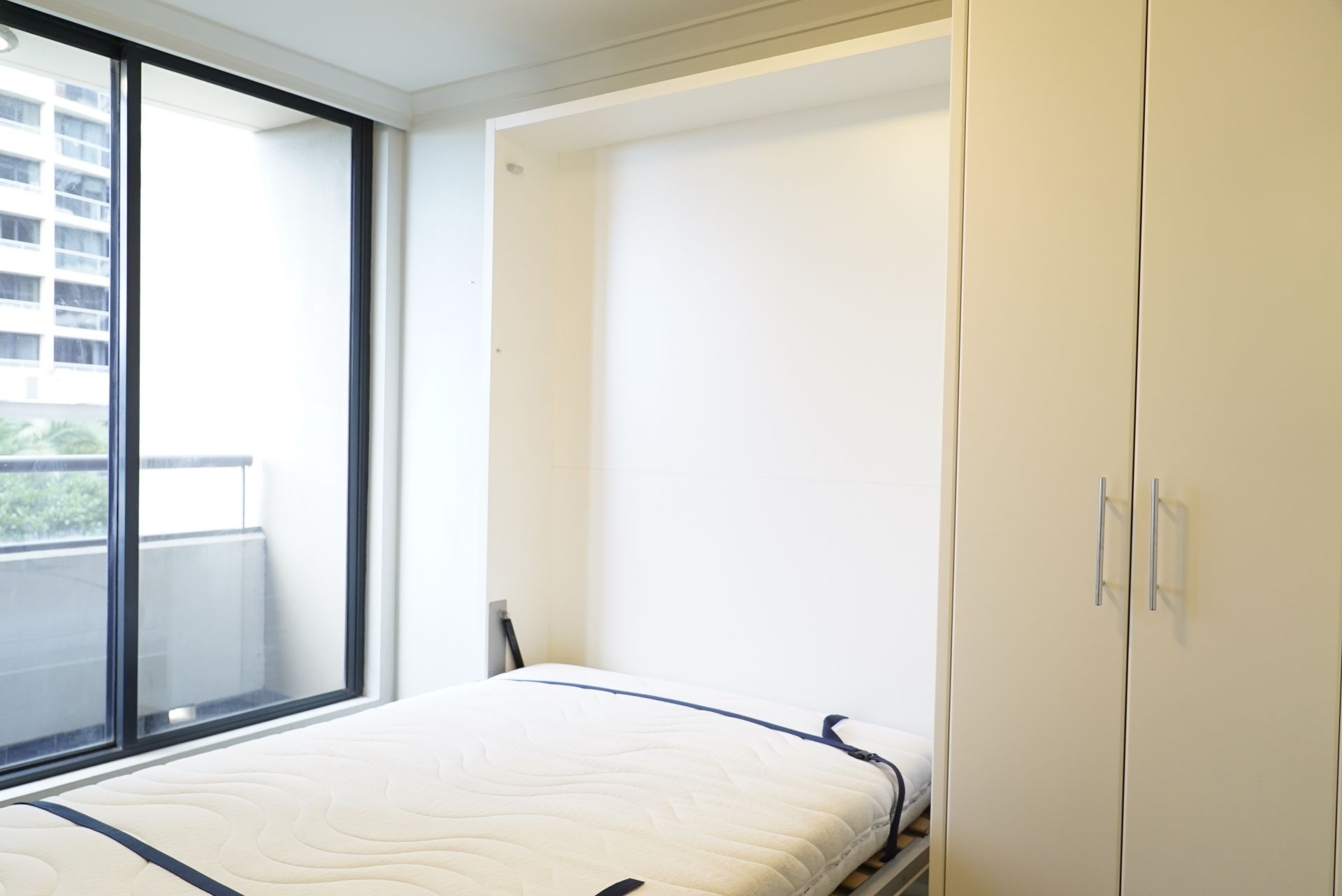 • Multi-purpose bedroom with flexible built-in folding Murphy bed, wardrobes and balcony access.