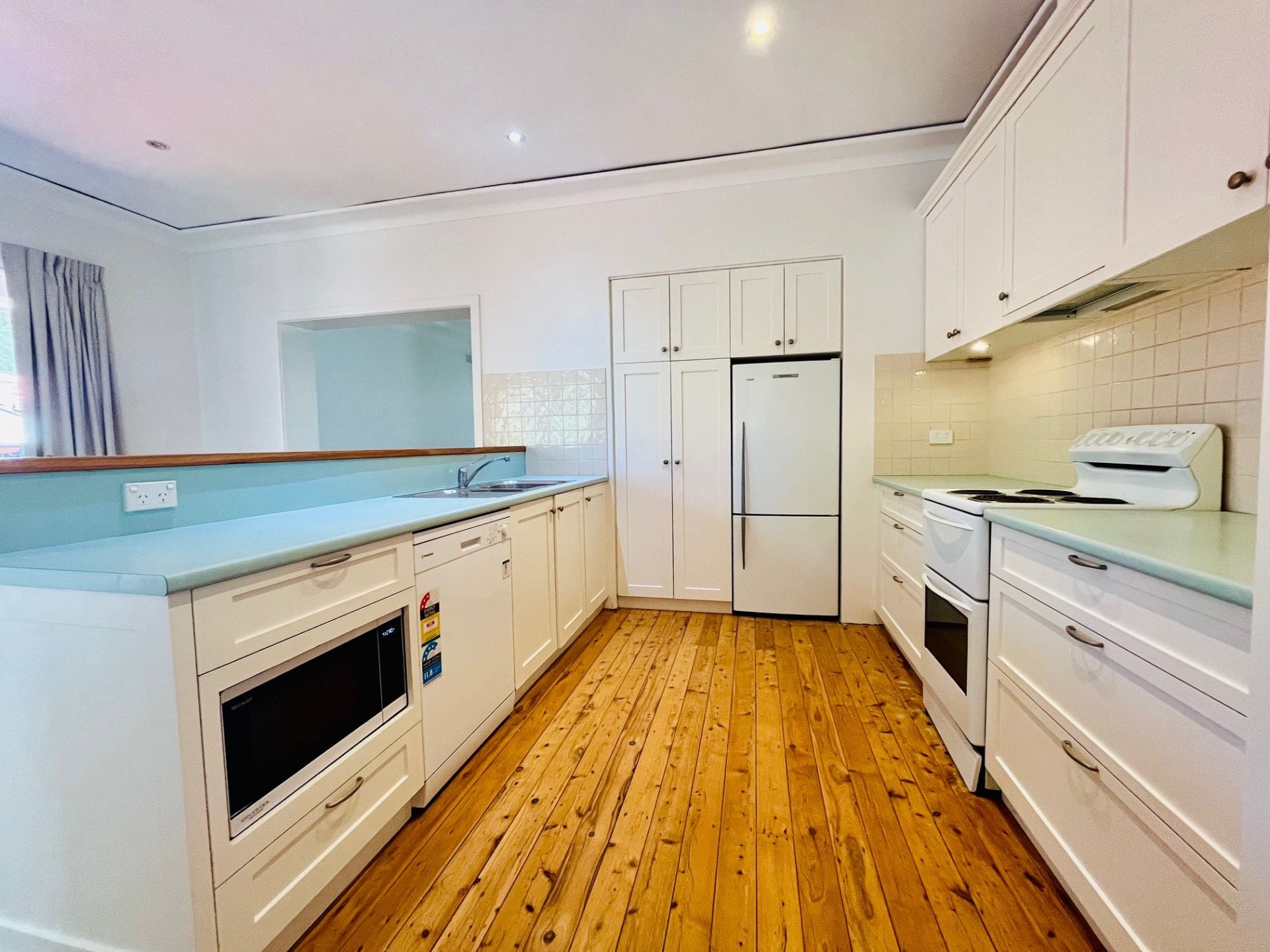 - Electric kitchen with good storage, dishwasher, microwave and fridge included