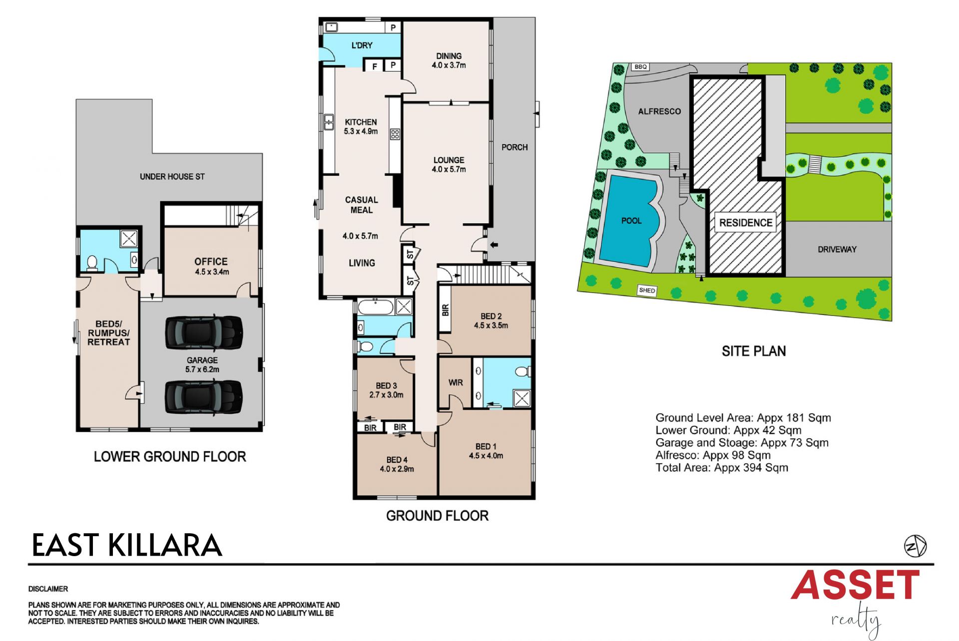 • 5 Bedrooms, Office/Study, 3 bathrooms: Master bedroom with a walk-in robe, full ensuite with twin basins, four good-sized bedrooms with generous built-in robes, 5th bedroom/teenager's retreat with ensuite