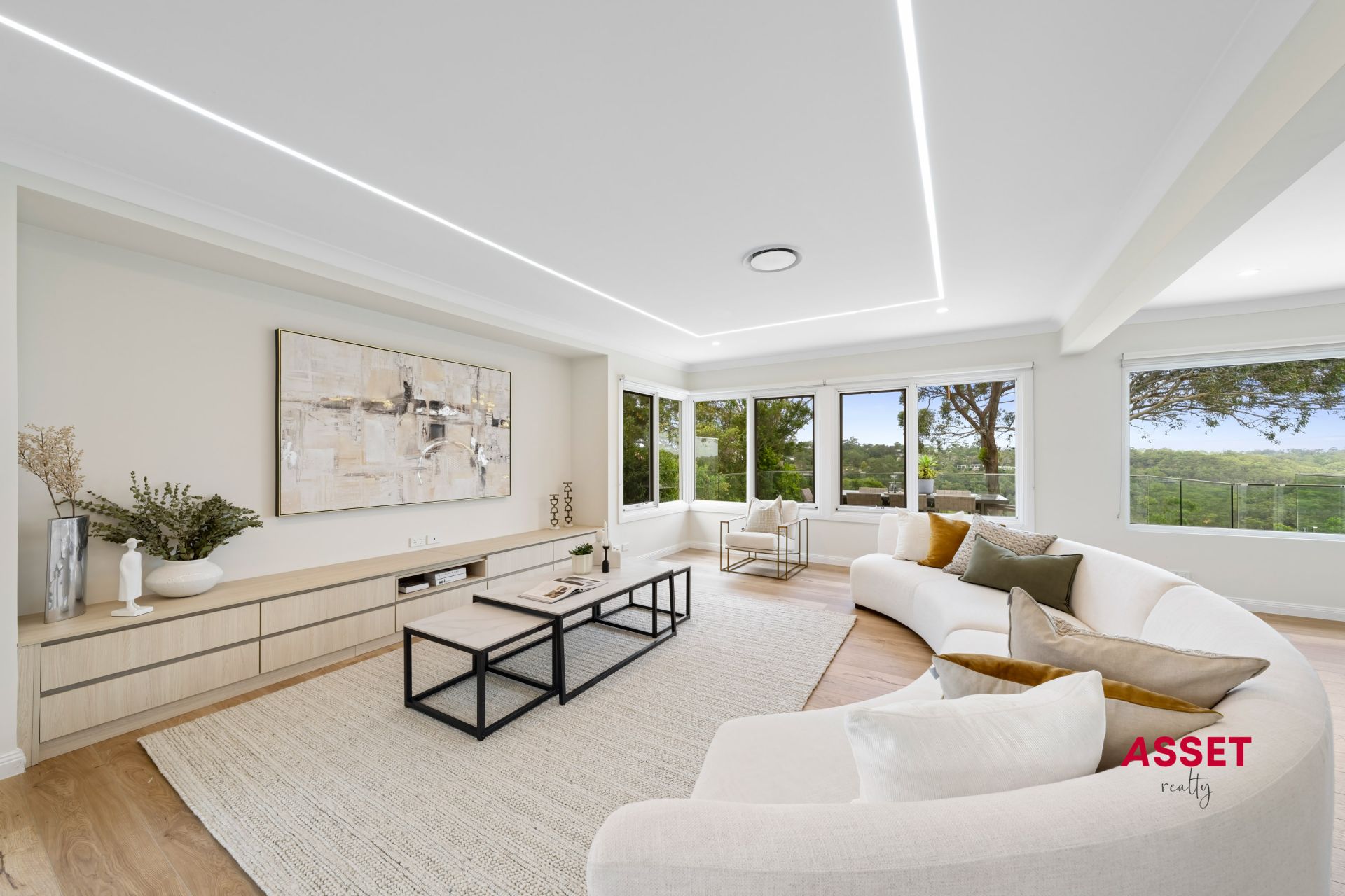 -Timber and tile flooring throughout. LED smart mood lighting.