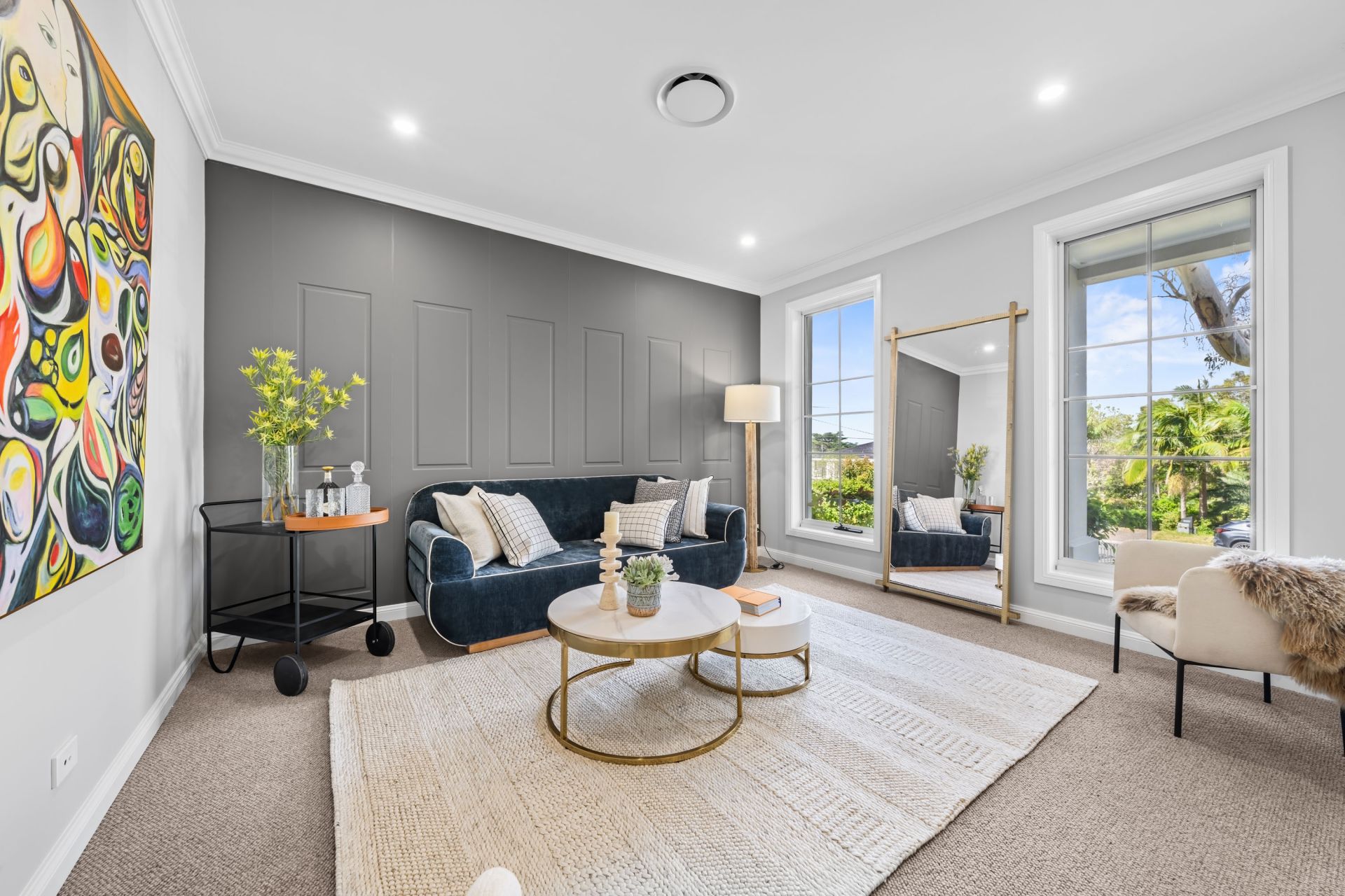 A statement of contemporary sophistication and enduring family appeal, this brand-new residence sets a new benchmark in luxury living. Designed with grand proportions, refined detailing and a focus on effortless entertaining, it occupies a high-set 1,046 sqm parcel in one of East Killara's most prestigious streets. Herringbone parquet flooring, elegant panelling and soaring ceilings define its timeless interiors, while multiple living zones connect seamlessly to alfresco terraces, a full outdoor kitchen and level lawns framing a resort-style mosaic pool.