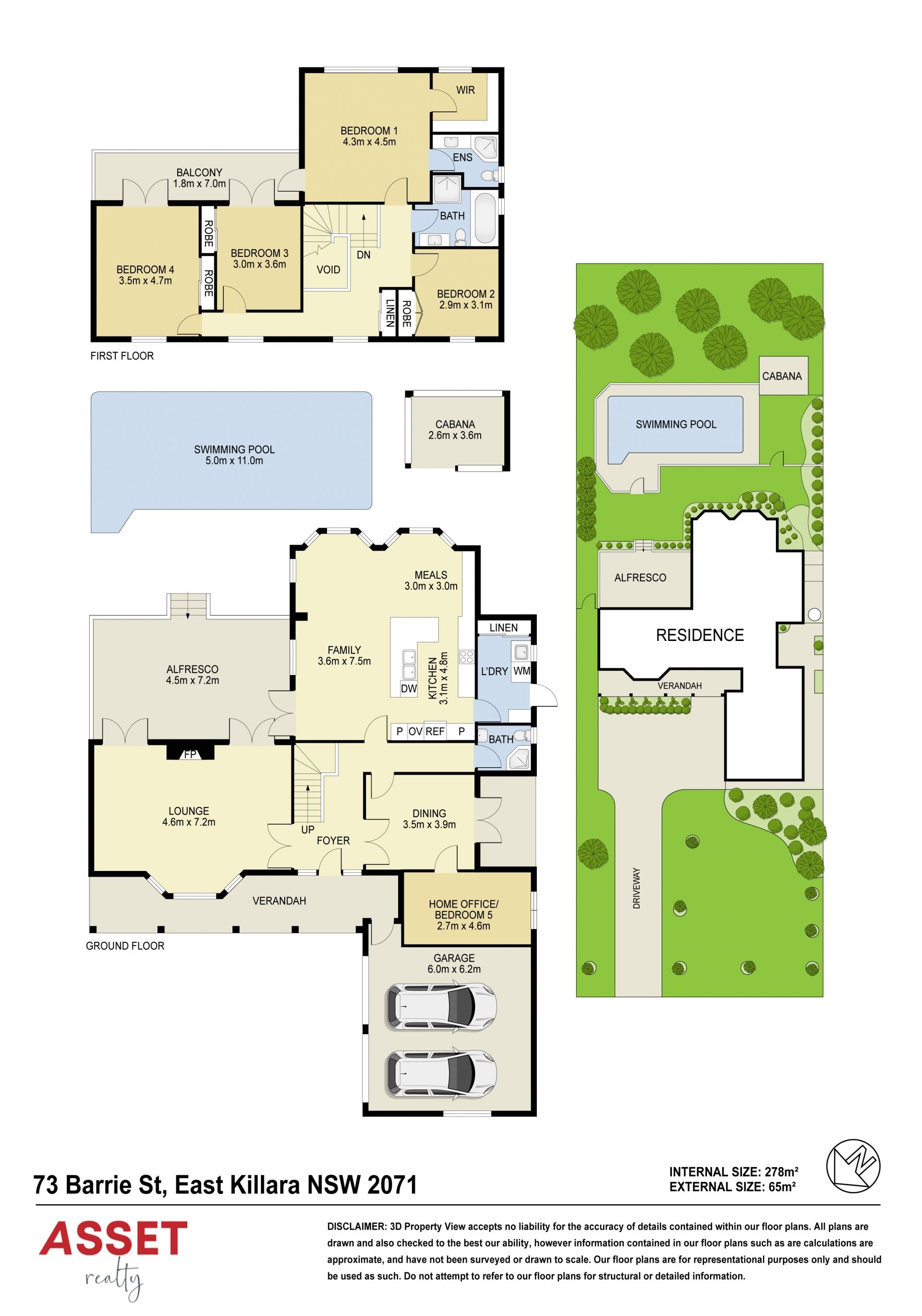 - Five bedrooms with built-in robes, three bathrooms. Master suite with walk-in robe, ensuite and private balcony access, bedrooms two and three with balcony access, bedroom five or home office on ground floor