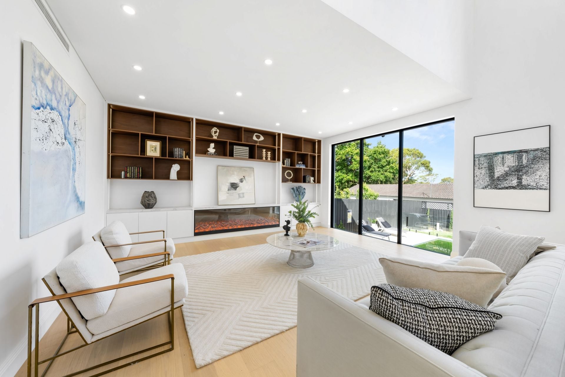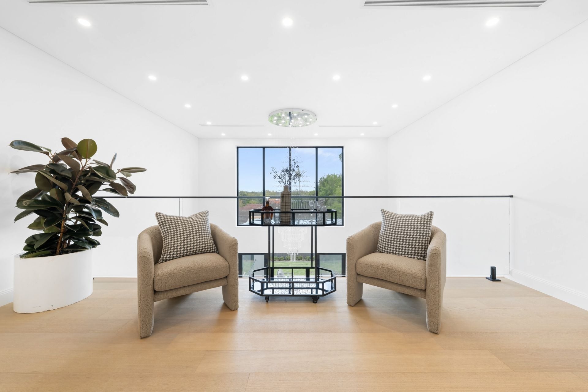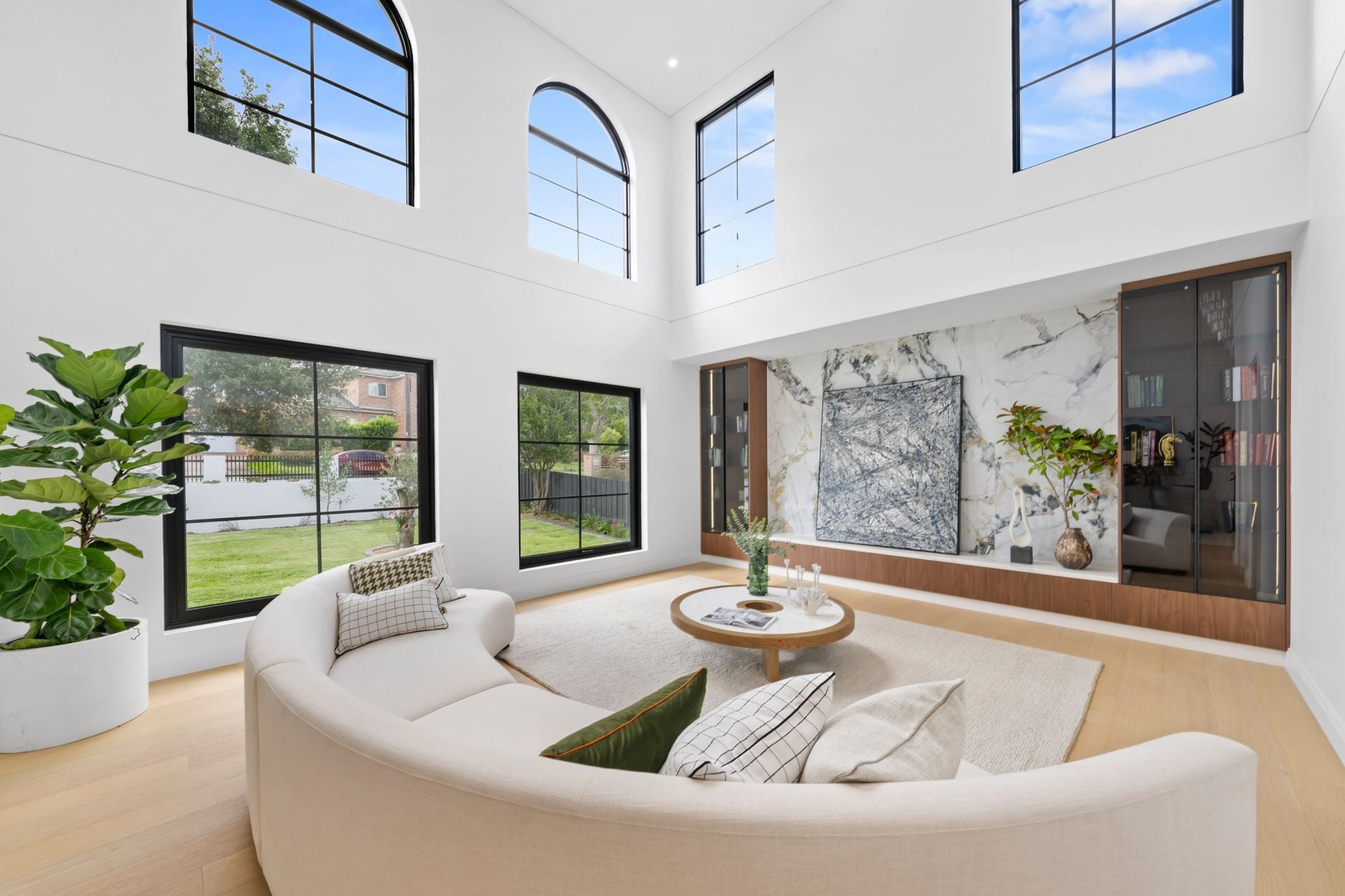 - Spectacular formal lounge with soaring ceilings, custom marble feature wall, floor-to-ceiling windows, premium timber floors, LED downlights throughout
