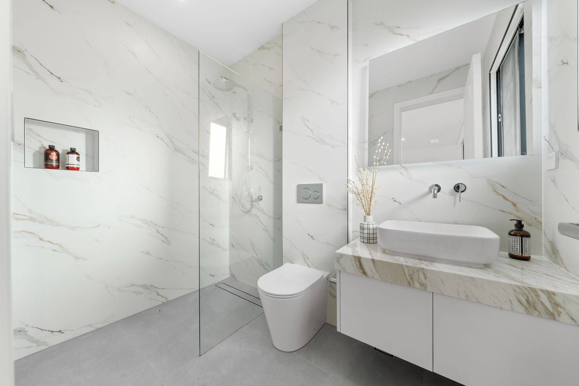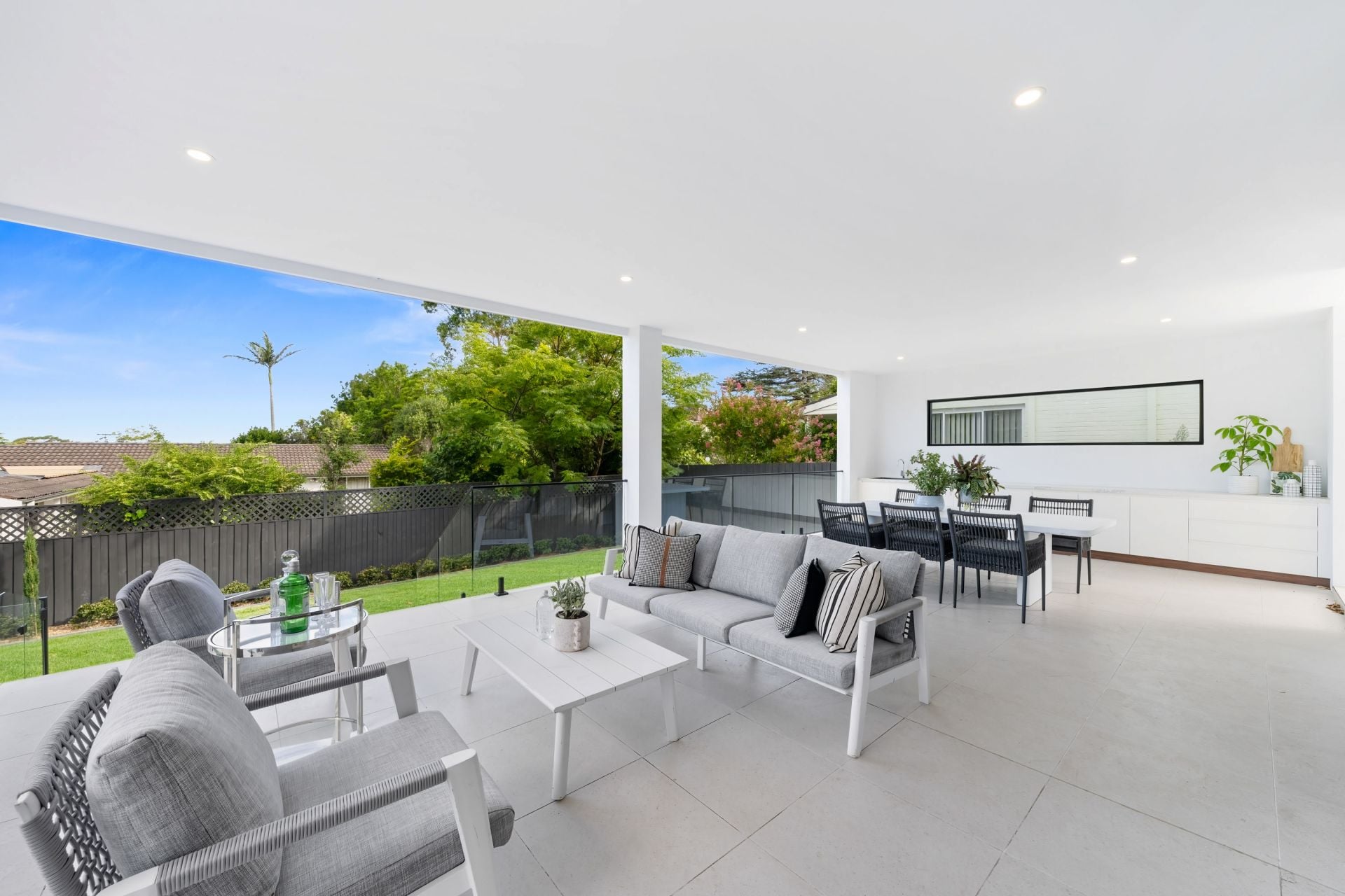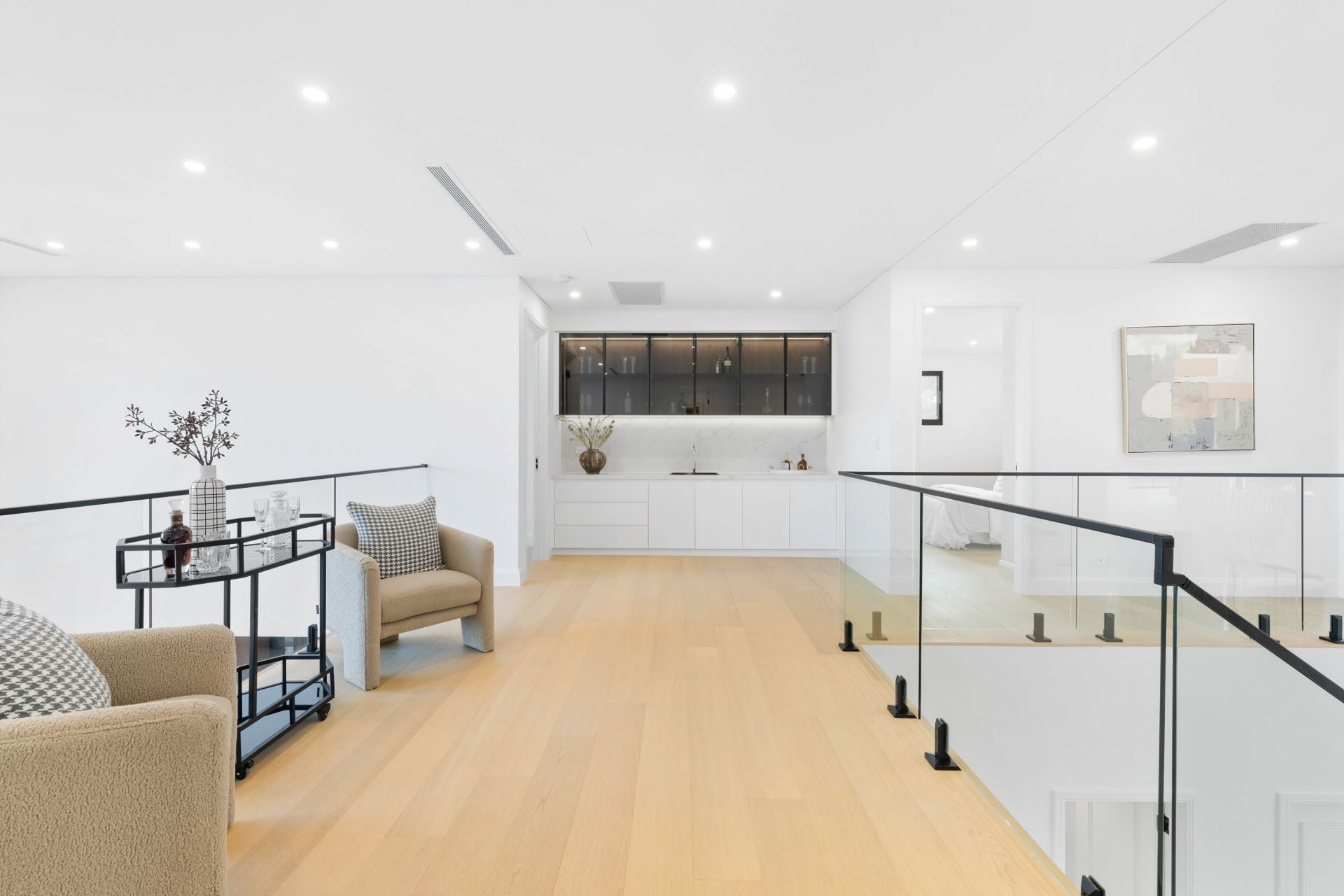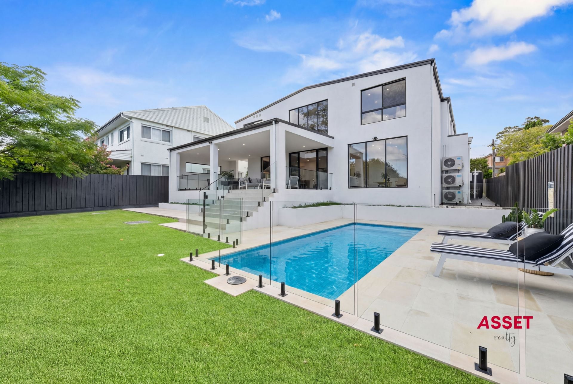 A masterpiece of contemporary luxury, this new master-built residence sets a new benchmark for prestige living in East Lindfield. Bathed in natural light from a prized north-west aspect and positioned with level entry leading to a level backyard, the home unfolds across a sophisticated two-level layout where soaring double-height voids and statement designer chandeliers create an immediate sense of grandeur. At its heart, a spectacular living area is anchored by a custom marble feature wall, while the showpiece kitchen with waterfall island and butler's pantry flows effortlessly to a covered alfresco terrace overlooking a sparkling pool and manicured gardens. With five opulent bedrooms each featuring full ensuites with heated flooring, an upstairs sitting area with sleek bar, and exquisite finishes throughout, this is resort-style family living moments from East Lindfield village.