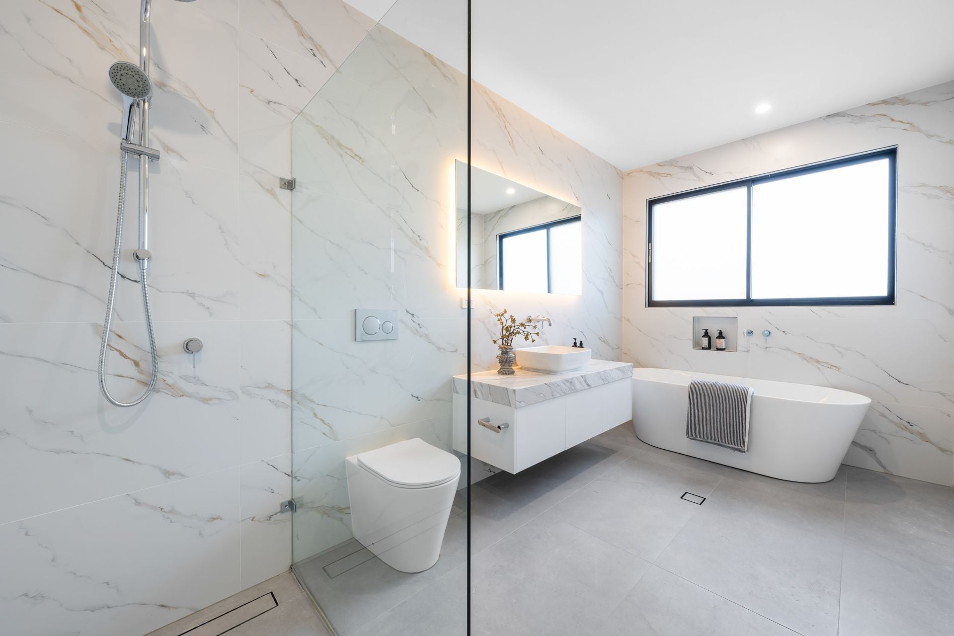 - Master suite with walk-in robe, freestanding bathtub and treetop views