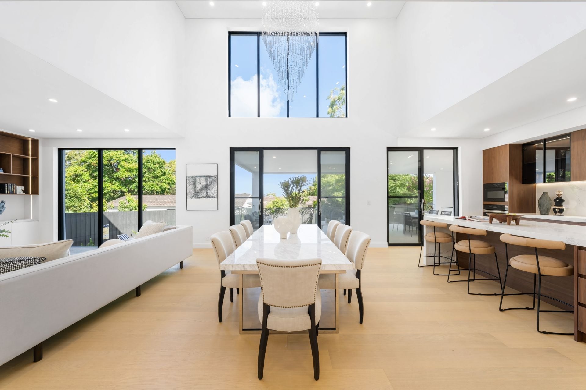 - Open plan living, dining areas with soaring ceilings flowing seamlessly to large alfresco entertaining terrace