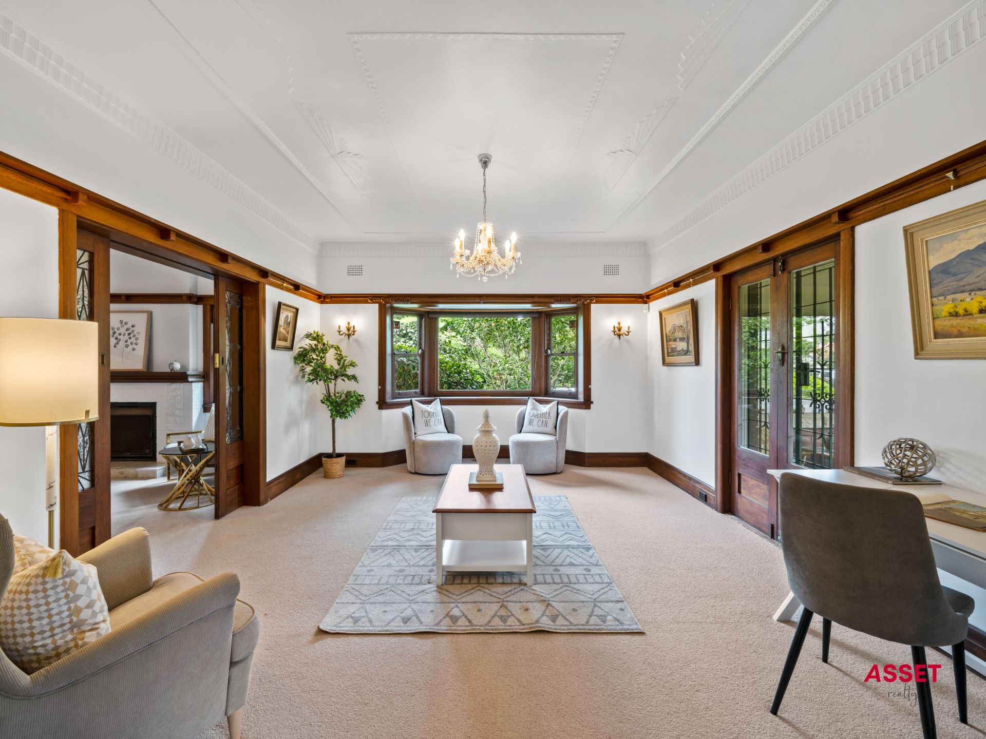 - Formal areas with period features, Bay Windows, Fireplace and Ornate ceilings. Reverse cycle ducted air-conditioning and gas underfloor heating. New Carpets.