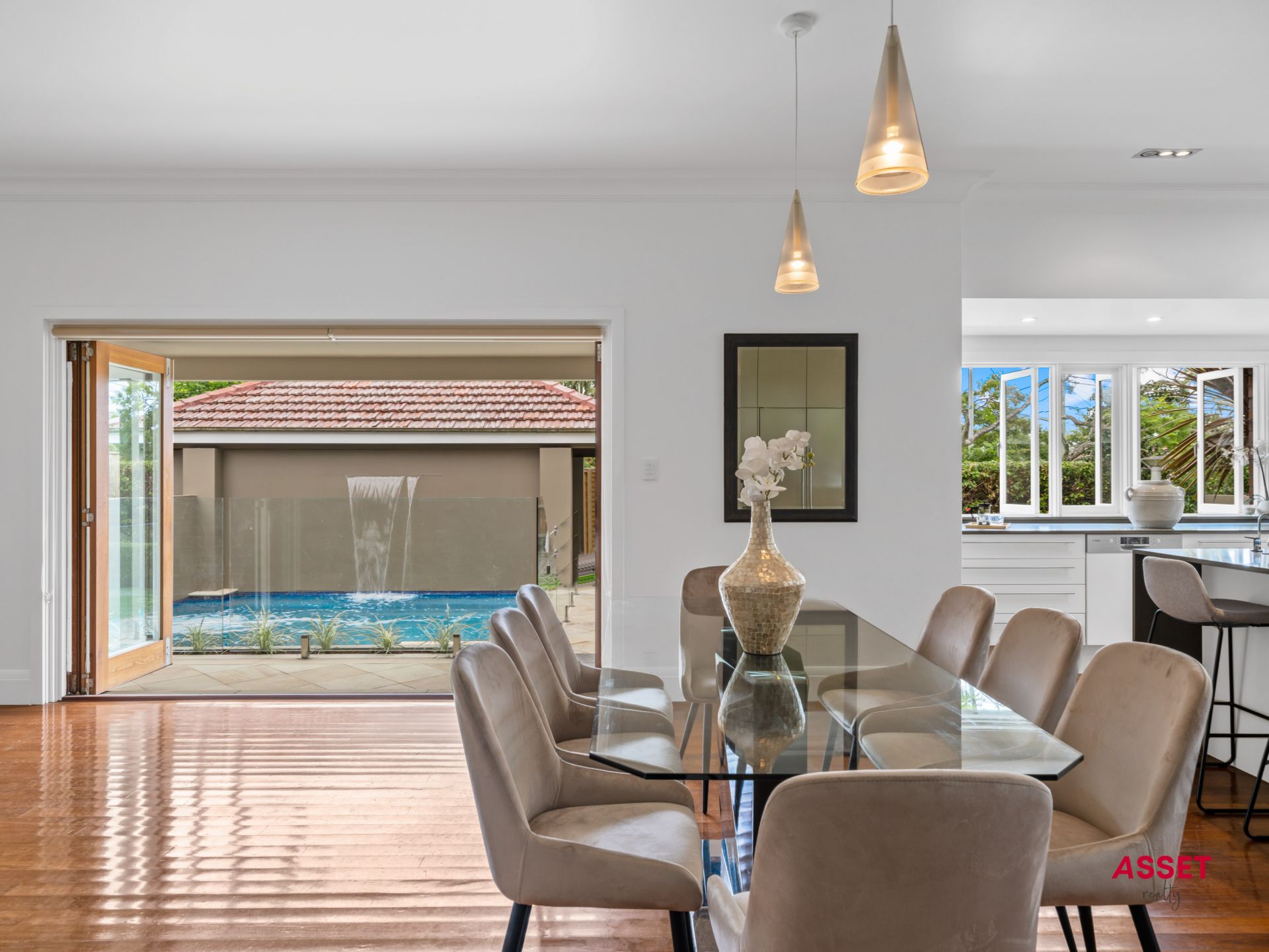- Large eat-in Kitchen with Caesar stone bench, European appliances and storage. Outdoor Terrace and Informal Lounge/Dining.