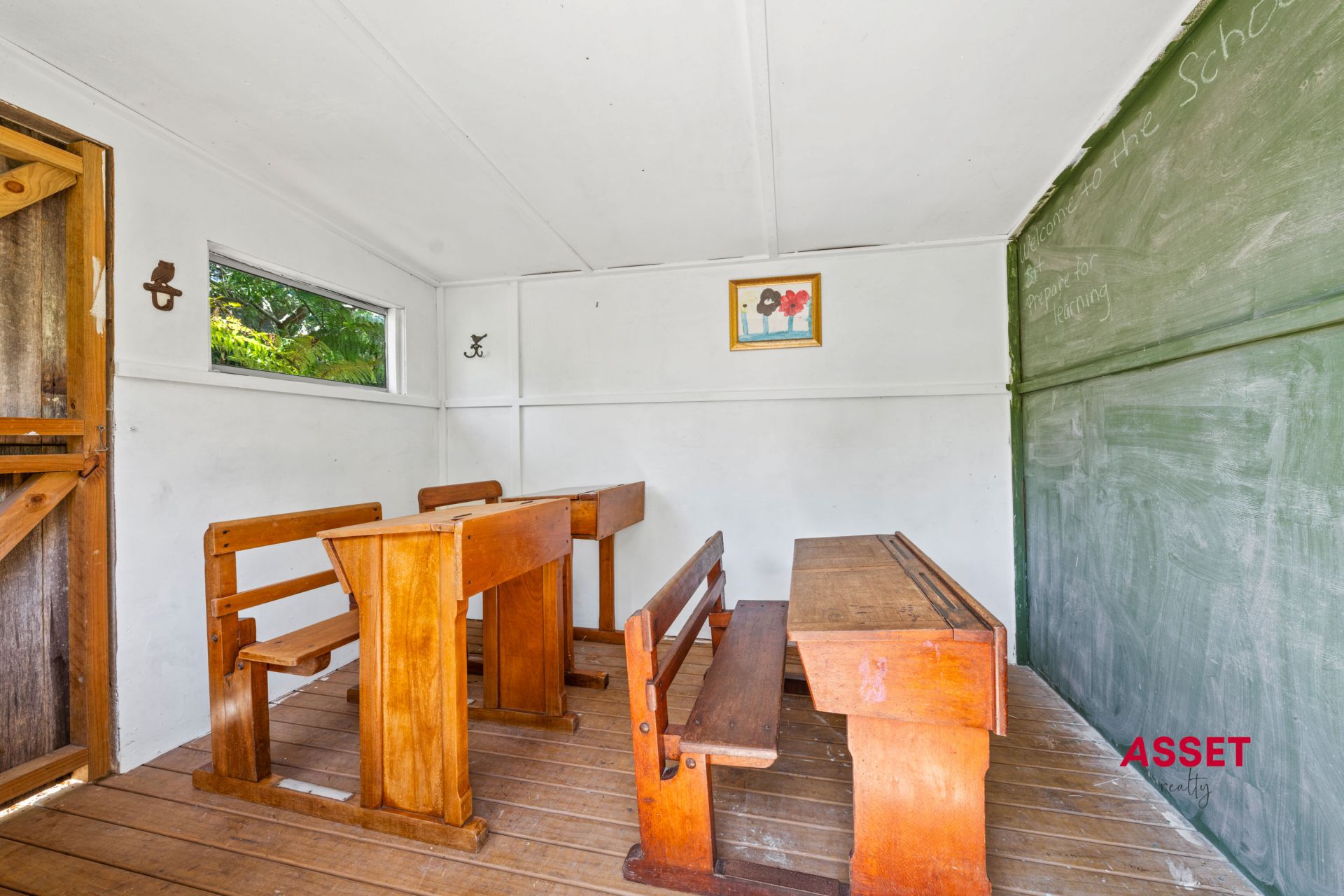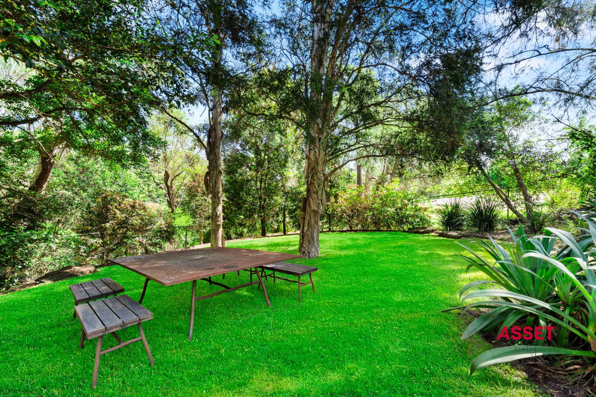 Kid safe, fully fenced, professionally landscape architect designed backyard with level lawns, lush greenery, private spaces, and a kids' cottage or shed, ideal for play, extra storage, or hobbies. Room for a swimming pool