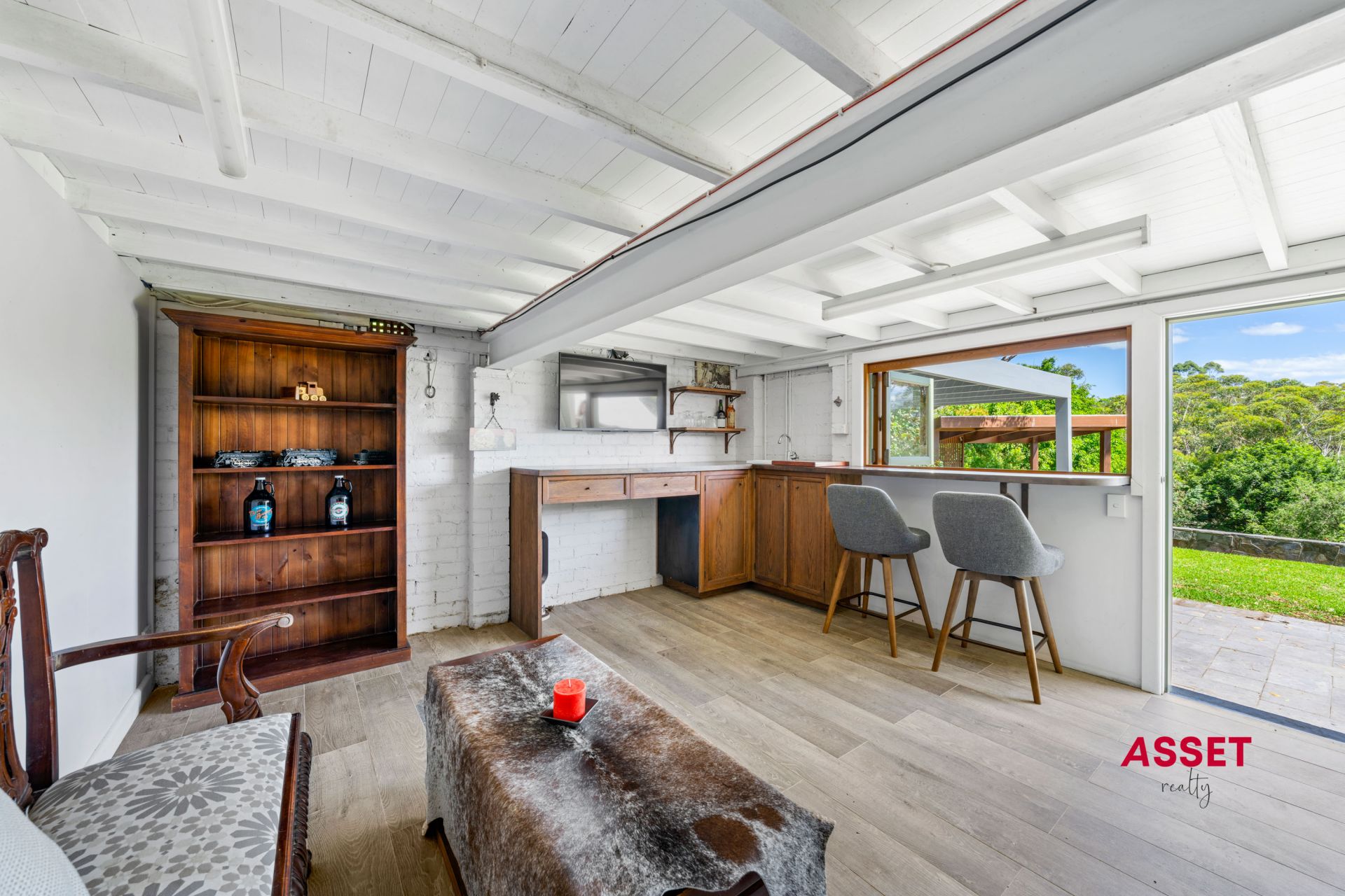 Wine cellar with wet bar, seating, and views of the fire pit – an entertainer's dream, perfect for intimate gatherings or watching your favourite shows or sporting events in style