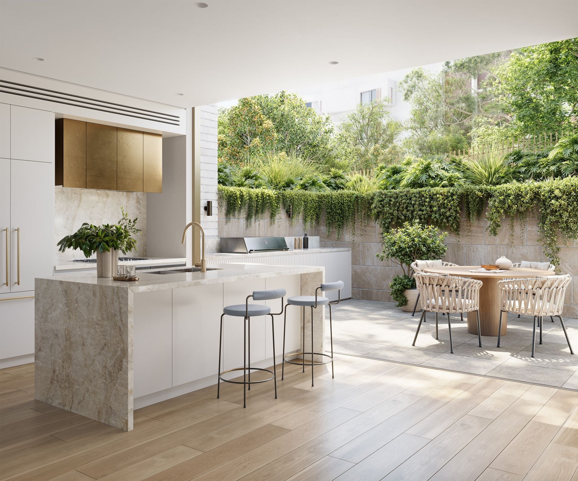 Sublime corners for relaxation and quiet contemplation have been purposefully woven into the landscaped communal spaces, shaded by a canopy of established trees. Wander along the pathway connecting the residences to the natural surroundings, natural creek bed and raised boardwalk where you'll find peaceful seating areas to unwind.