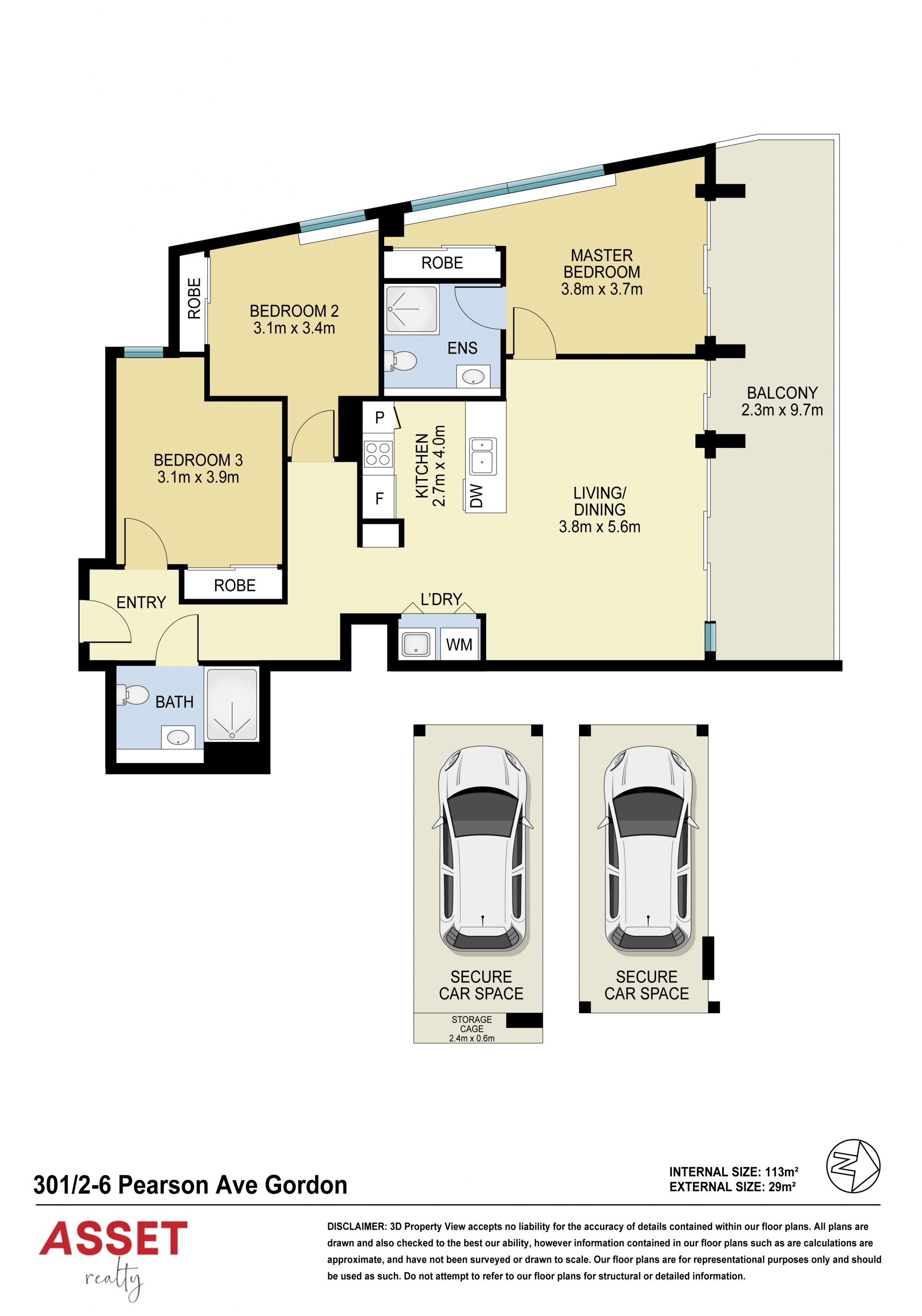 - Two carspaces with storage cage with direct access to lift