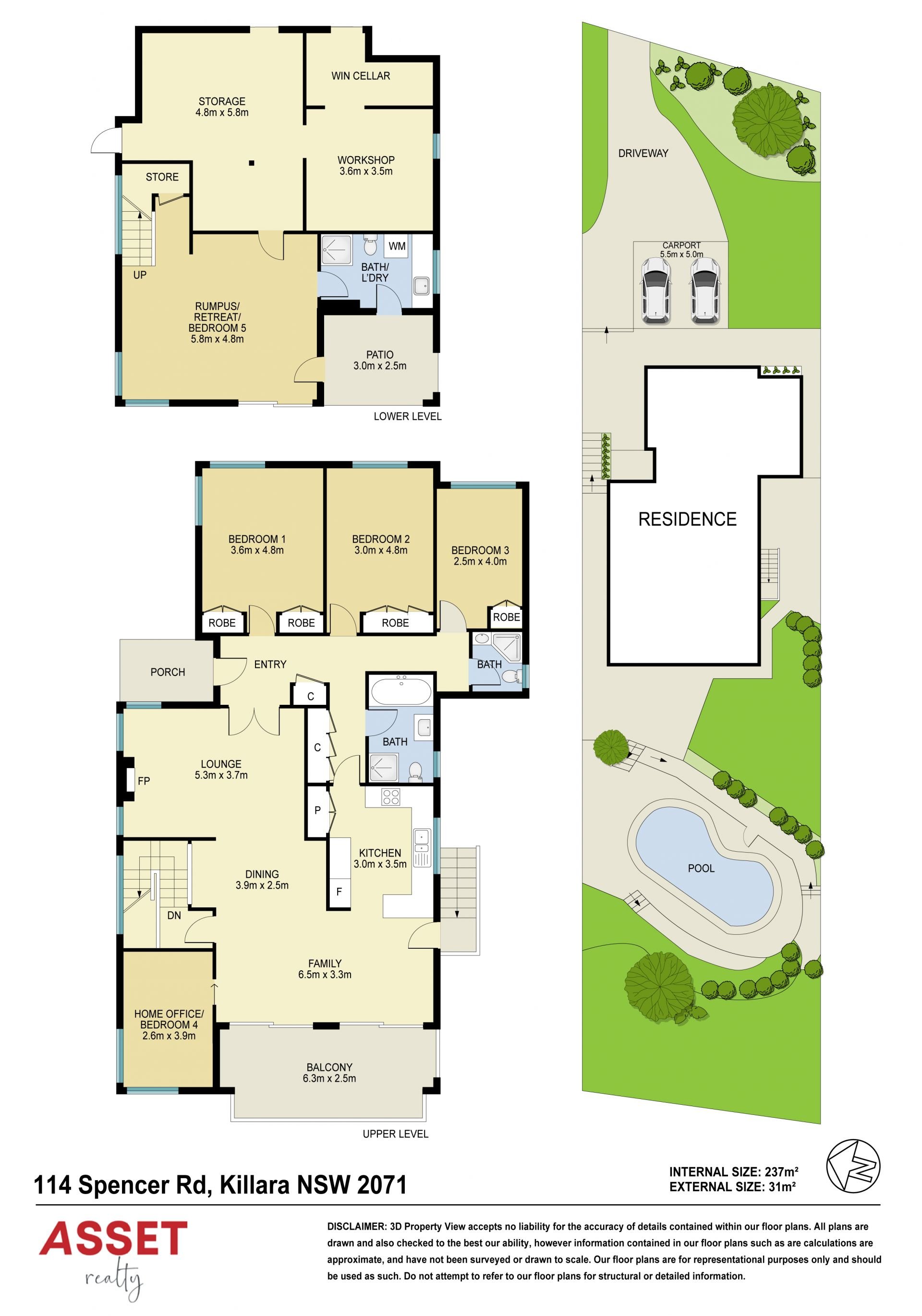 • 4/5 Bedrooms, 3 bedrooms, study/4th bedroom upstairs. Rumpus/5th bedroom/parents retreat with ensuite downstairs.