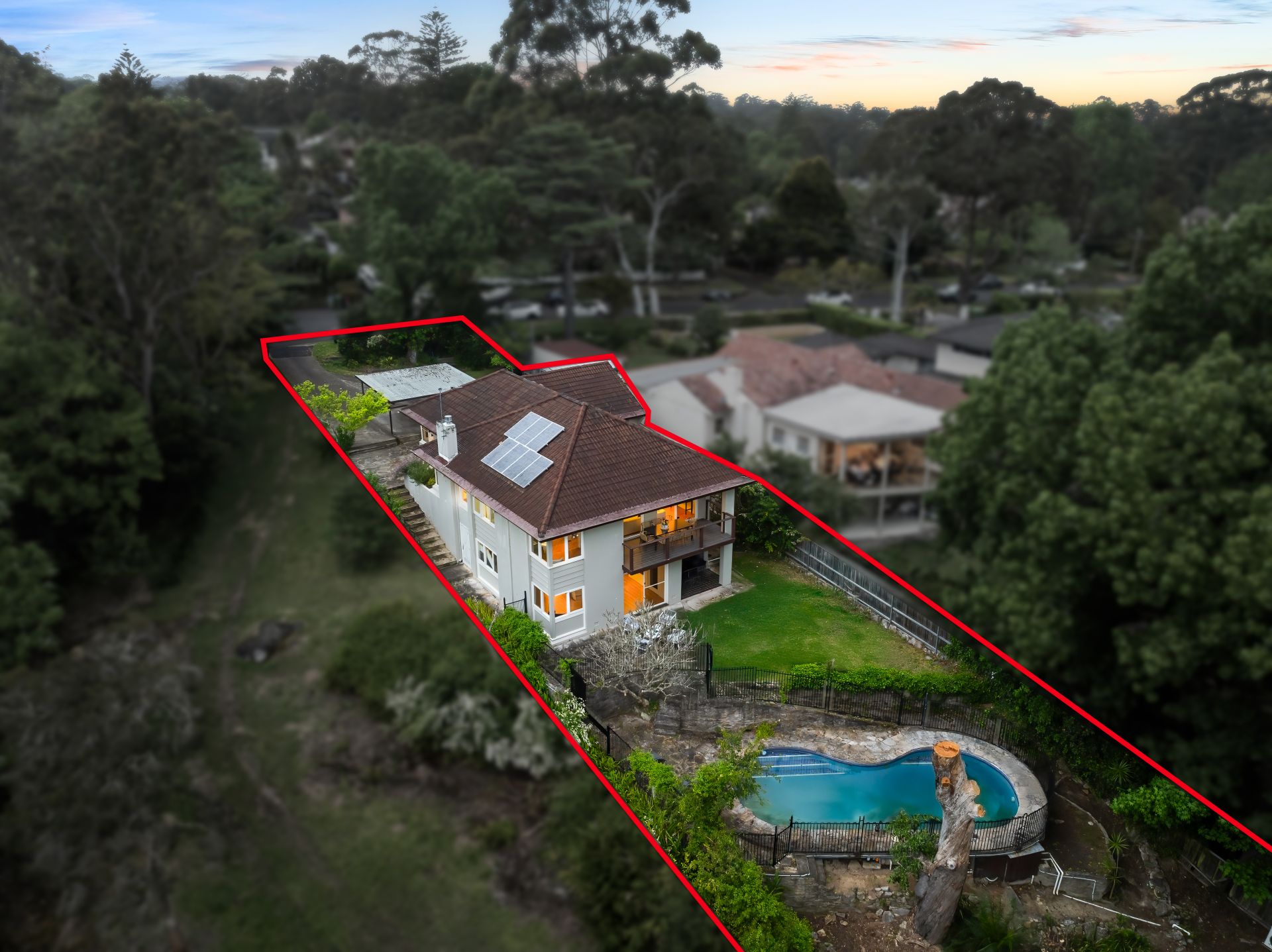 Peacefully positioned adjoining Gordon Golf Club and overlooking the lush greens of Falls Creek, this master-built brick construction residence captures the essence of refined family living in one of Killara's most exclusive cul-de-sac settings. Embracing the serenity of its natural surrounds, it combines classic 1950s character with modern practicality, creating a warm and inviting retreat for families of all ages. Two distinct living areas showcase beautiful golf course and bushland vistas-one opening to a sunny balcony for effortless entertaining, and the other featuring a cosy fireplace perfect for cooler evenings. The versatile layout offers three generous bedrooms with built-ins plus 4th bedroom or home office upstairs, while 5th bedroom suite rest privately on the lower level with its own ensuite and direct garden access-ideal as a parents' retreat, guest accommodation or expansive rumpus.