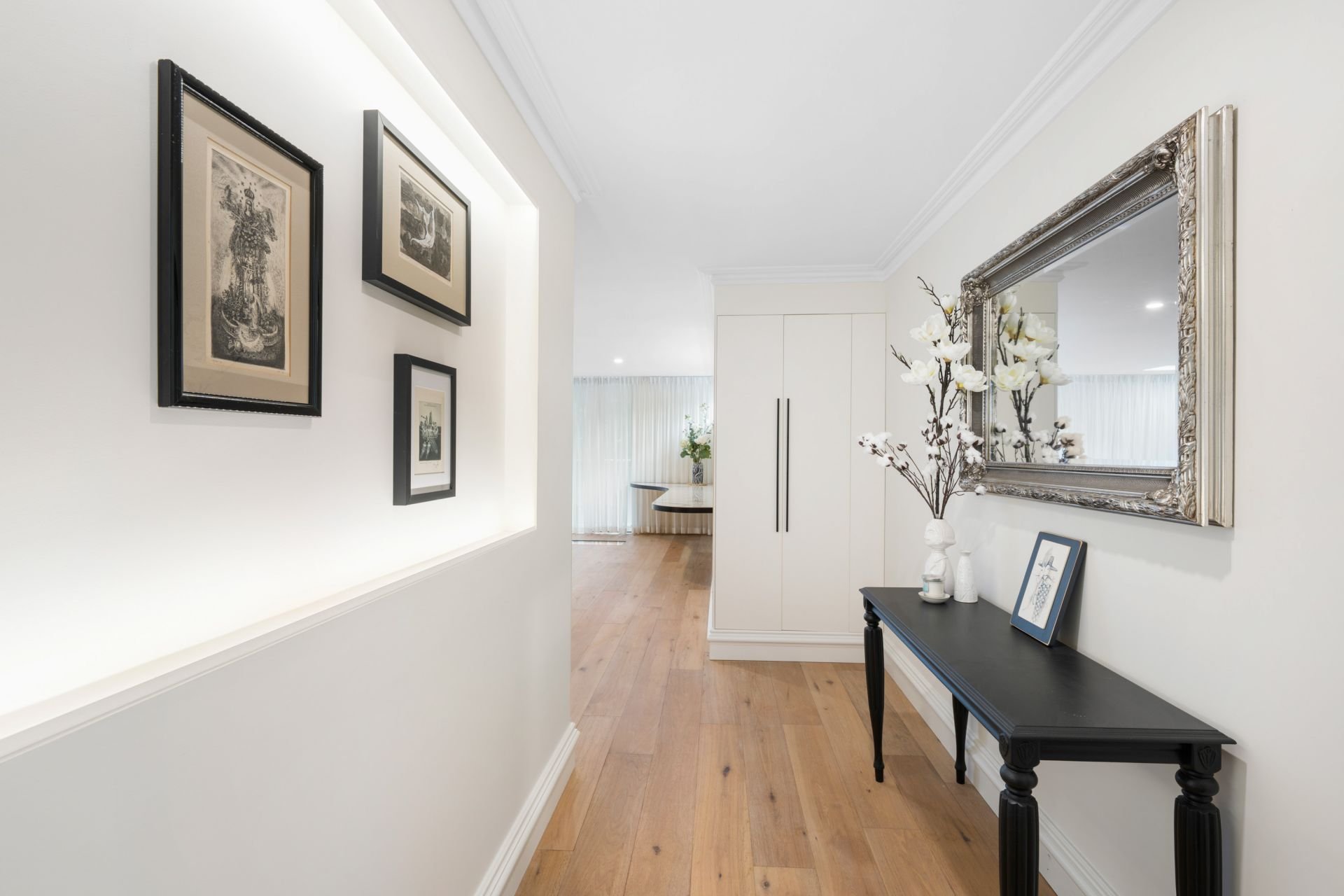 • Invisible doors, seamless joinery and extensive concealed storage throughout.