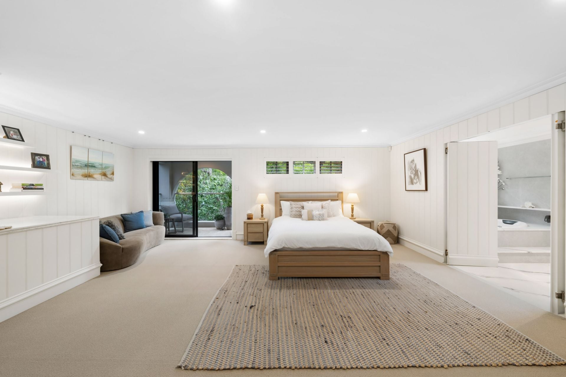 • Luxurious upstairs master retreat with balcony, walk-in robe and Carrara marble ensuite and air-conditioning.