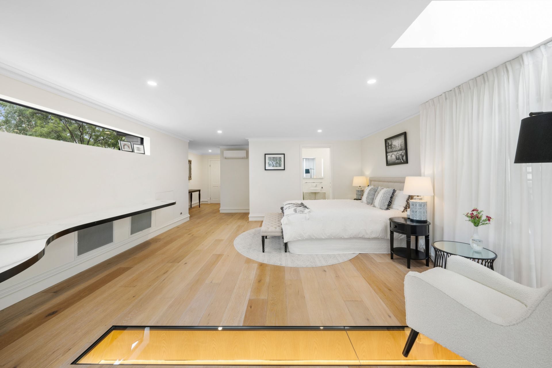 Designed for both grand entertaining and everyday living, the home features expansive open-plan spaces, a designer kitchen at its heart, and multiple living zones across several levels. Luxurious bedroom suites, a private lower-level retreat with leisure amenities, beautifully landscaped, low-maintenance grounds combine to offer a refined yet effortless lifestyle in one of St Ives' most desirable pockets.