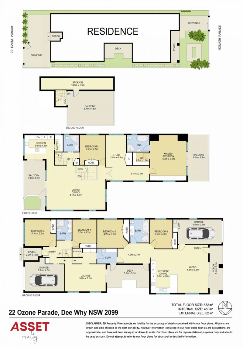Facing north east, with breath taking views over the Pacific Ocean, Dee Why Beach and Long Reef Golf course, is this six bedroom, four bathroom home with dual access from both Ozone and Monash Parade. Two separate living areas complete with two kitchens on either side of the house creates the option of two separate homes (STCA). From Ozone Parade, past the off-street parking / single lockup garage, you are greeted by a reception leading you through level access to two bedrooms sharing a modern family bathroom. The rumpus room on this level is adjacent to a north facing terrace adjoining the internal laundry. Upstairs you are graced by north easterly views from the formal lounge/dining leading to the entertaining balcony which features a garden bed (also Spa STCA). A bedroom and family bathroom are on this level, with a study guiding you to the Master featuring a walk-in robe, spa bath ensuite and a balcony. The bright kitchen features a walk in pantry, induction cooktop and stone benchtops taking advantage of that magical aspect. The rooftop terrace offers 270 degree views with glimpses of Sydney's Centrepoint Tower.